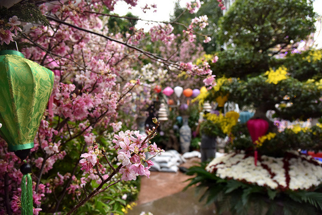 Held for the fourth consecutive year, the festival is jointly organised by the Hanoi People's Committee and the Japanese Embassy in Vietnam, featuring 100 cherry blossoms trees and 20,000 branches, plus various kinds of local flowers modeled into famous landscapes and symbols of the two countries.