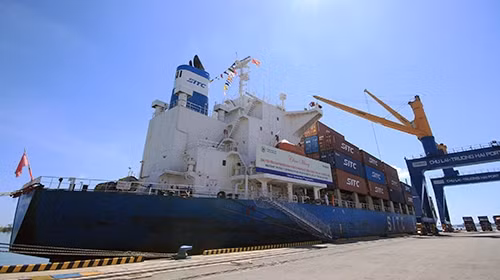 Quang Nam's Chu Lai Port receives the first international container ship on August 5.