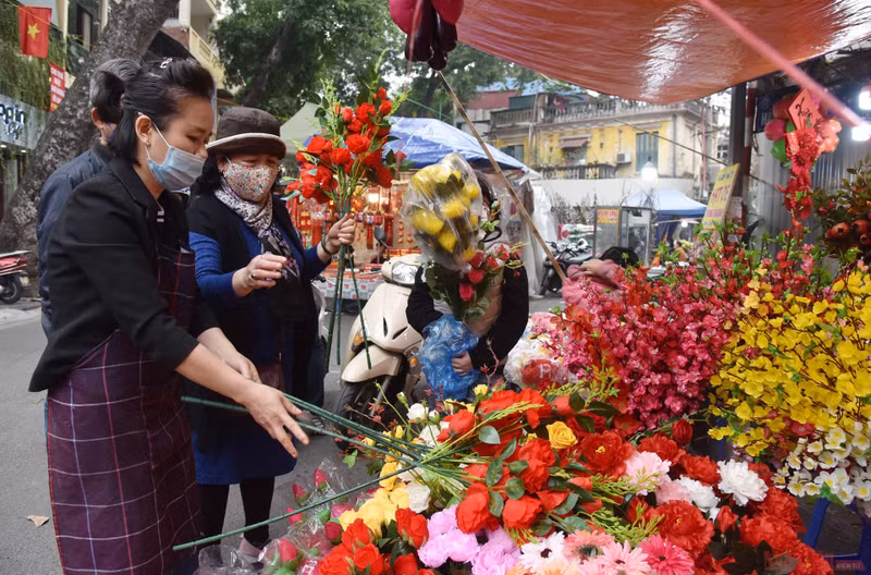 Hang Luoc Flower Market is not only a place to trade, it is also a familiar cultural space for the people of the capital when Tet comes.