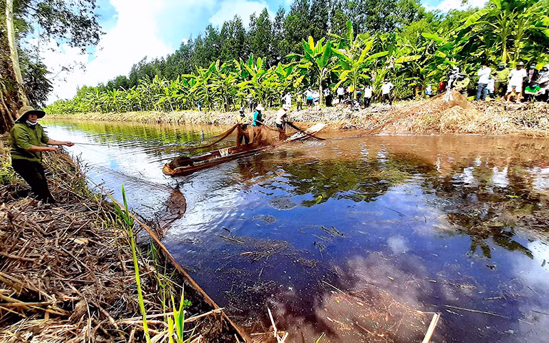 Harvesting field fish in U Minh Ha as part of the "Huong Rung U Minh" event.