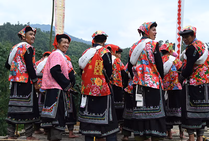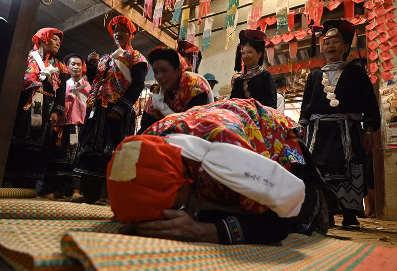 Fourteen couples were chosen in the family line, in which the husbands all had to go through three-lamp level ritual.