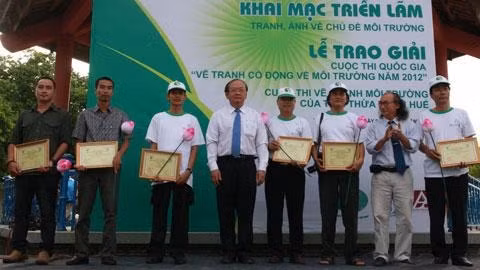 Deputy Minister of Natural Resources and Environment Bui Cach Tuyen presenting awards to winners of the 2012 National Painting Contest on Environment (nhandan.com.vn)