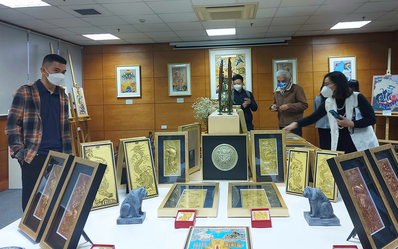 At the exhibition, several works were announced for the first time, with high applicability. The organising board also displayed a large-sized "Ngu Ho" (Five tigers) painting, which was completely hand-painted, using the traditional method of gilding.