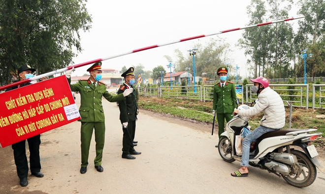 Checkpoints were set up along all roads of the affected areas in Binh Xuyen District, Vinh Phuc Province, to prevent the spread of the novel coronavirus. (Photo: cand.com.vn)