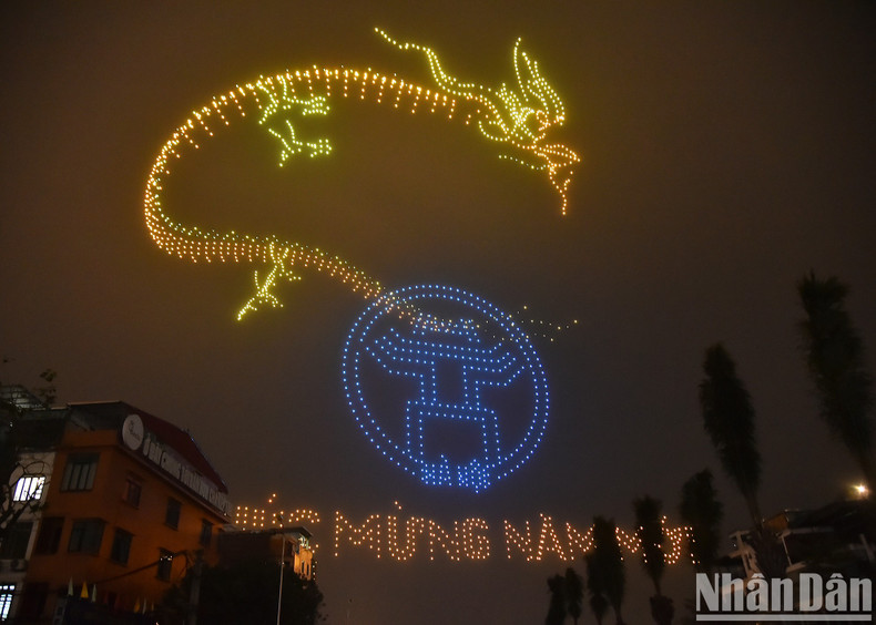 The special show opened with an image of Emperor Ly Thai To and the phrase “Chieu doi do” — the historical decree to move the capital of Vietnam from Ninh Binh to Hanoi.