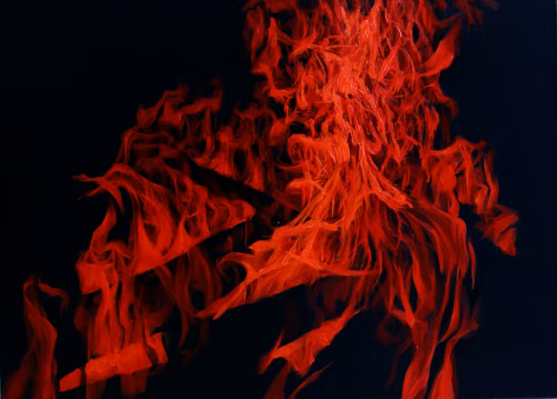 Twelve fire paintings on display feature elegant blazing flames with oil painting technique. “Everyone may have felt a strange feeling at least once in front of the fire with this great and intense energy. My work also started like this,” said young painter Jung.