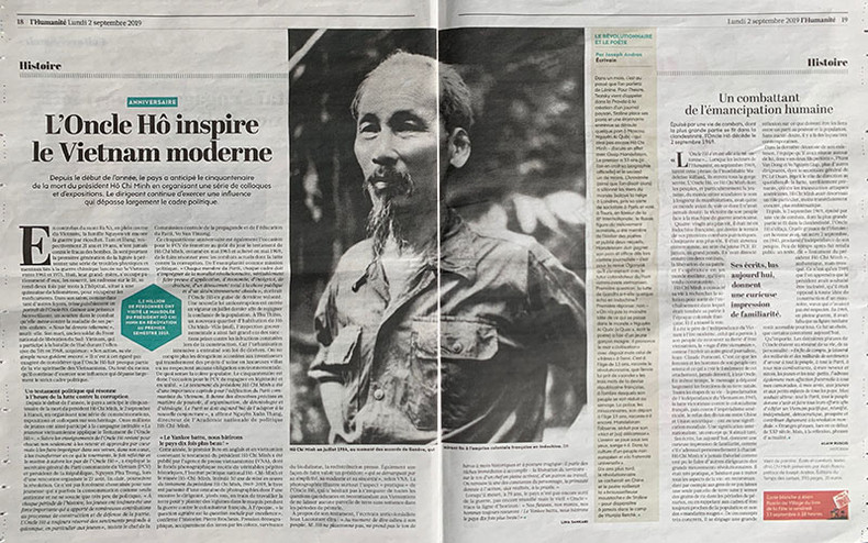 In the September 2 issue, the newspaper – an organ of the French Communist Party – posted a picture of President Ho Chi Minh on the front page and featured the entire two inside pages to run two articles under the theme of "L’héritage au long cours de l’Oncle Hô” (the legacy of Uncle Ho).