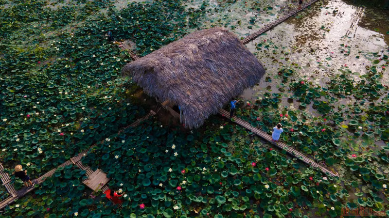 As a rising "check-in" place in Hanoi, the 7.5-hectare pond is considered a “lotus paradise” as it houses nearly 200 precious varieties of lotuses from around the world.