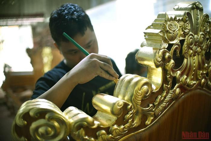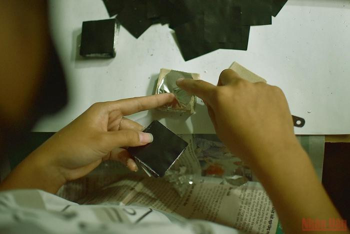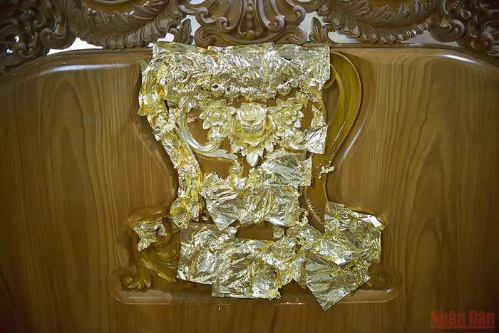 Craftspeople rub talcum powder on their hands so that gold leaves do not stick to their hands, avoiding loss of materials and products.