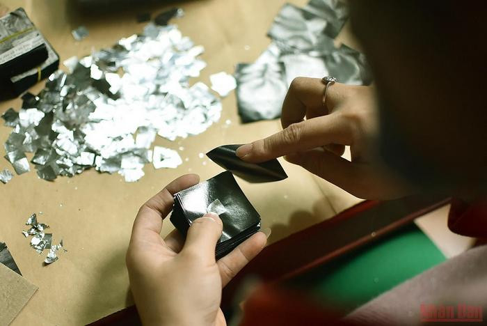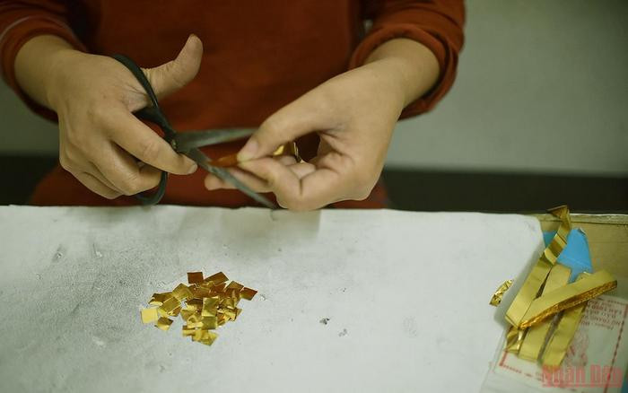 The craft of making thin gold leaf requires a meticulousness, carefulness and ingenuity because the gold leaves are easily blown away or broken.