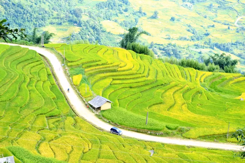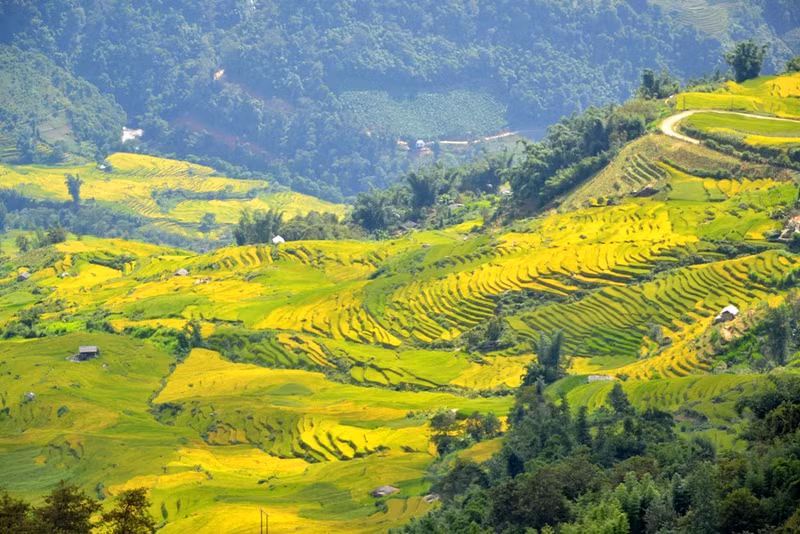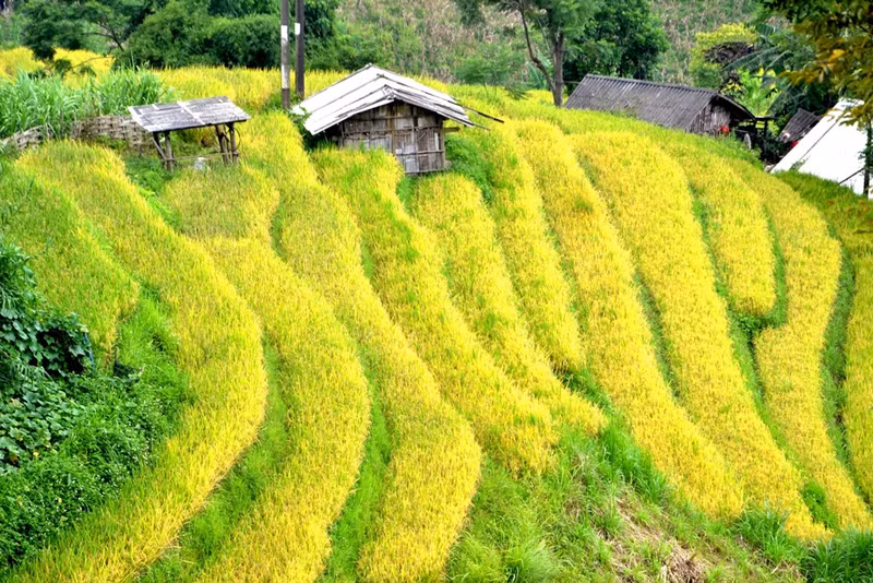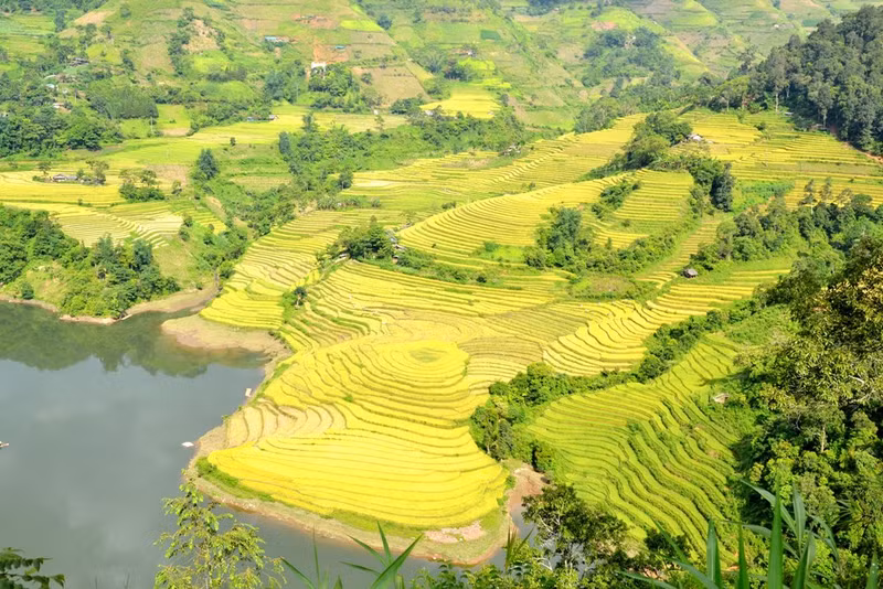 A terraced field looks like a giant’s fingerprint pressed into the land when seen from above.
