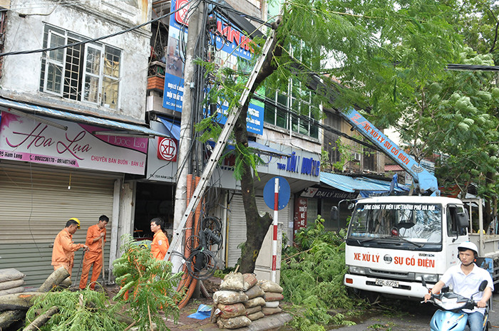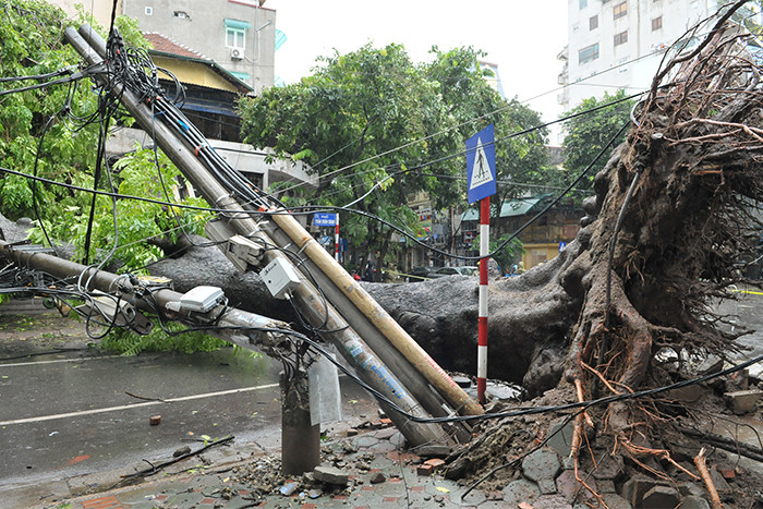 Many electricity posts in Hai Ba Trung district were toppled by the storm.