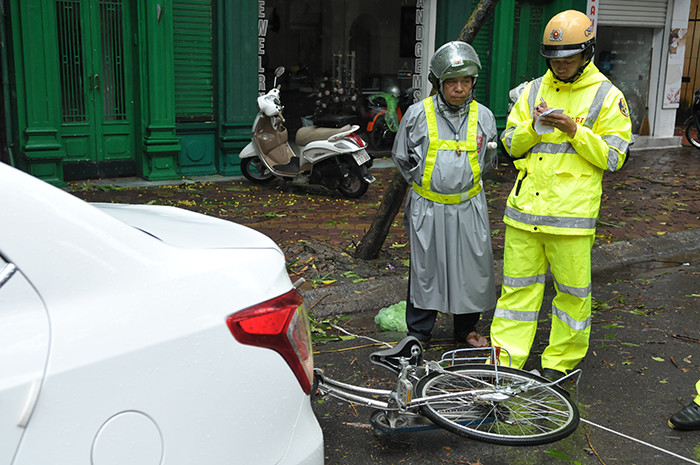 The scene of a storm-related traffic accident on Ngo Thi Nham Street.
