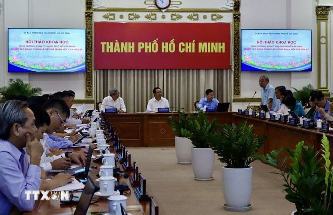 The seminar held by the Ho Chi Minh City People's Committee on April 9 to discuss the city's economic growth amid the new US tariff policy. (Photo: VNA)