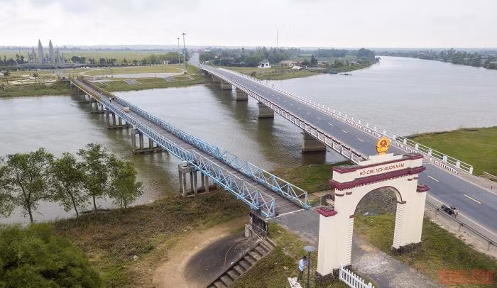 The bridge is located right on the 17th parallel, spanning the Ben Hai River in Vinh Thanh commune, Vinh Linh district, Quang Tri province. During the war against US imperialism, Hien Luong Bridge was the boundary dividing Vietnam into North and South.