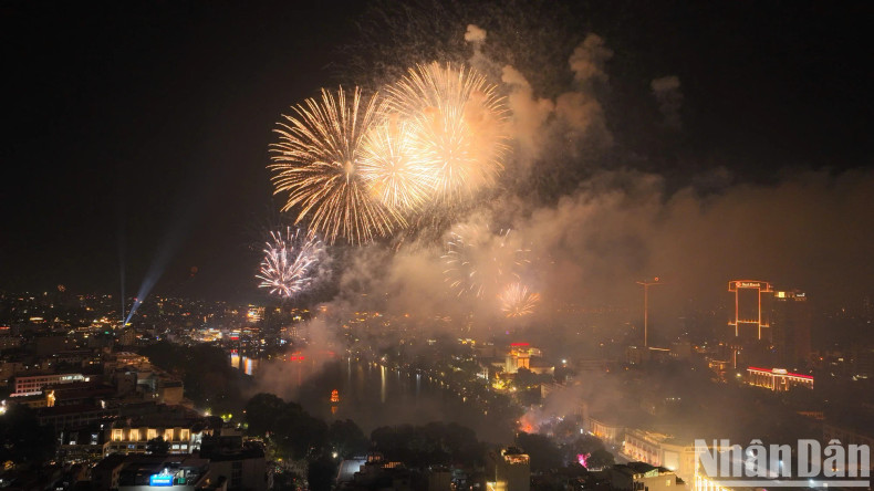 |   At My Dinh Stadium, as the clock struck midnight on the first day of the Lunar New Year, vibrant fireworks lit up the night sky as part of the ‘Ruc Ro Thang Long’ (Glamour Thang Long) programme.  |