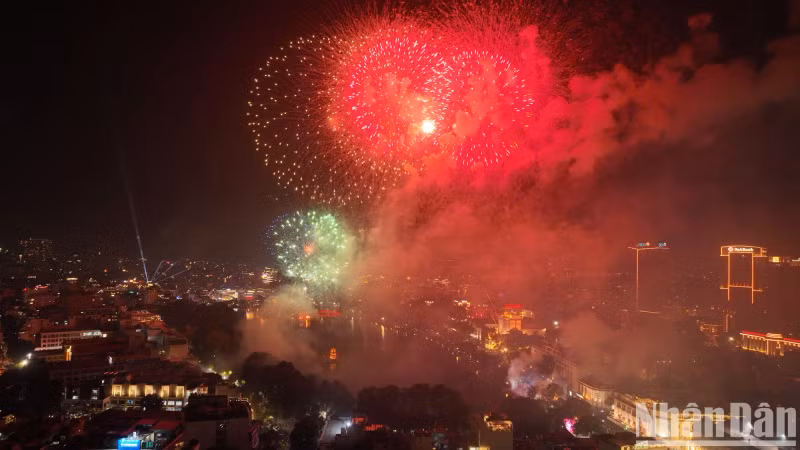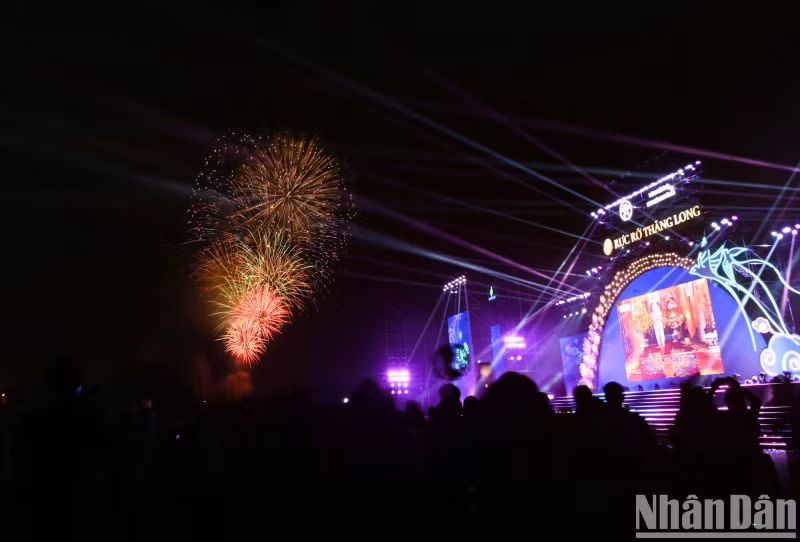 | At My Dinh Stadium, as the clock struck midnight on the first day of the Lunar New Year, vibrant fireworks lit up the night sky as part of the ‘Ruc Ro Thang Long’ (Glamour Thang Long) programme. |