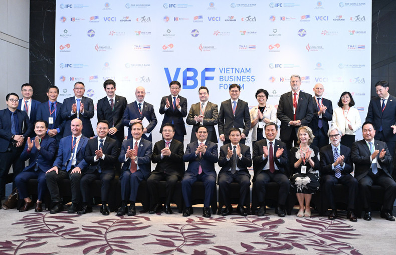 Prime Minister Pham Minh Chinh with delegates attending the annual Viet Nam Business Forum.