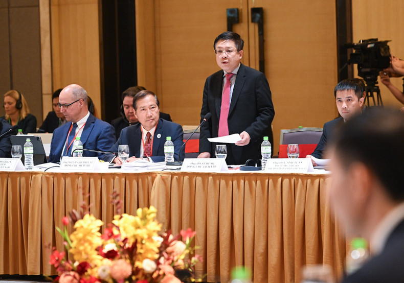 Minister of Finance Nguyen Van Thang delivers the opening remarks at the forum.