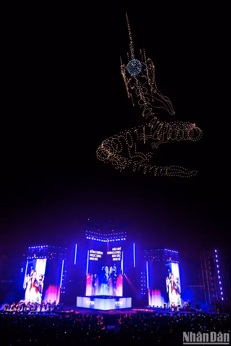 | The message of 'Vietnam - The new era of national development' is brilliantly recreated in the night sky. |