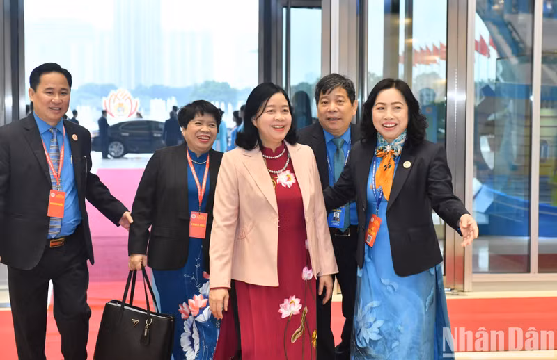 Head of the Central Commission for Mass Mobilisation Bui Thi Minh Hoai arrives at the congress.