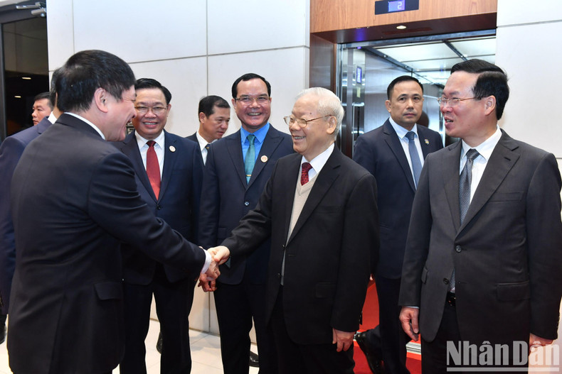 General Secretary Nguyen Phu Trong, President Vo Van Thuong, National Assembly Chairman Vuong Dinh Hue and delegates attending the congress.