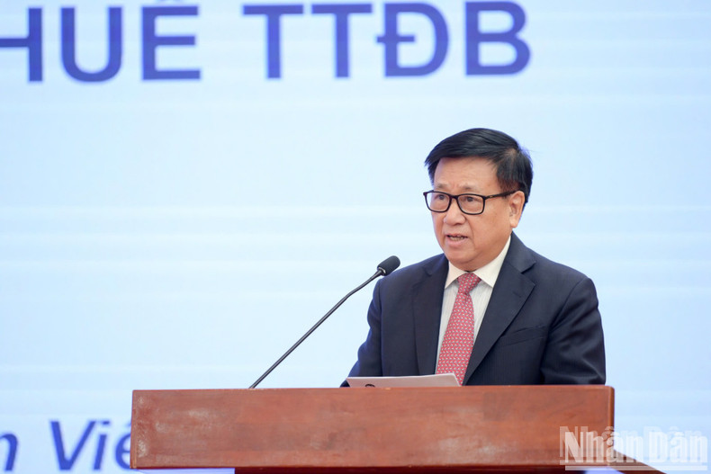 Le Quoc Minh, Member of the Party Central Committee (PCC), Editor-in-Chief of Nhan Dan Newspaper, Deputy Head of the PCC Commission for Information, Education and Mass Mobilisation, and Chairman of the Vietnam Journalists Association, delivers the opening remarks.
