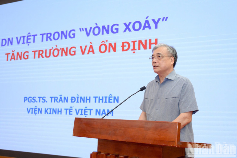 Associate Professor, Dr Tran Dinh Thien, former Director of the Vietnam Institute of Economics and Member of the Prime Minister’s Economic Advisory Group, presents a report titled “Vietnamese enterprises in the vortex of growth and stability”.