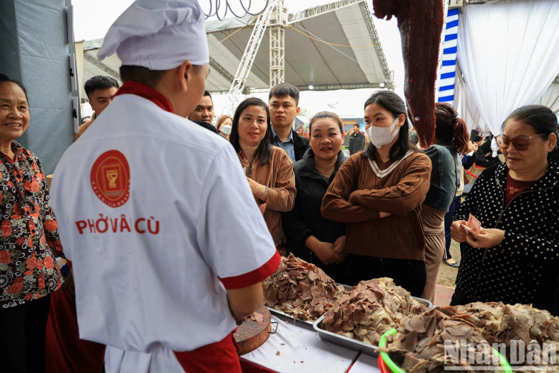 | The stall of Van Cu ‘Pho’ received a large number of customers to enjoy the taste of Nam Dinh’s traditional pho, many of whom were present from 7am. |