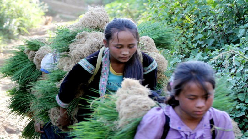 | Children look after their younger siblings right in the field so that their parents can feel secure in sowing seeds and ensuringthe harvest time. |