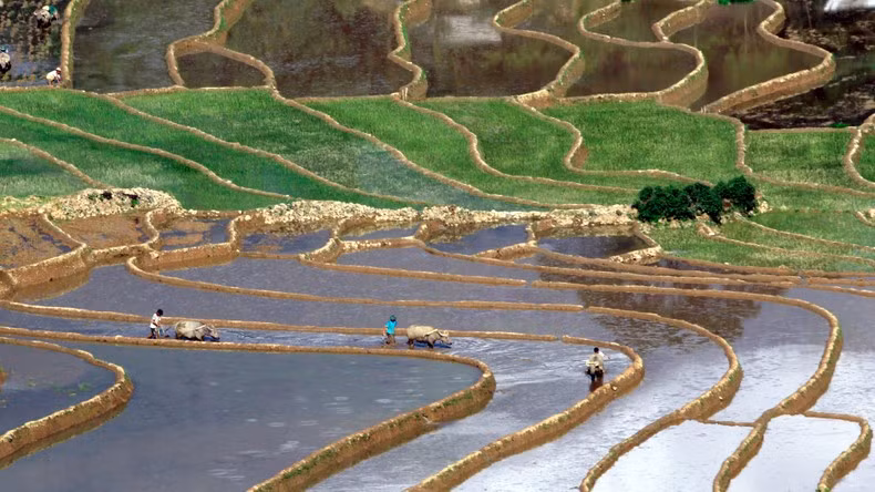 | Looking down from above, terraced fields look like colourful paintings of mountains, captivating tourists, photographers,and filmmakers. |