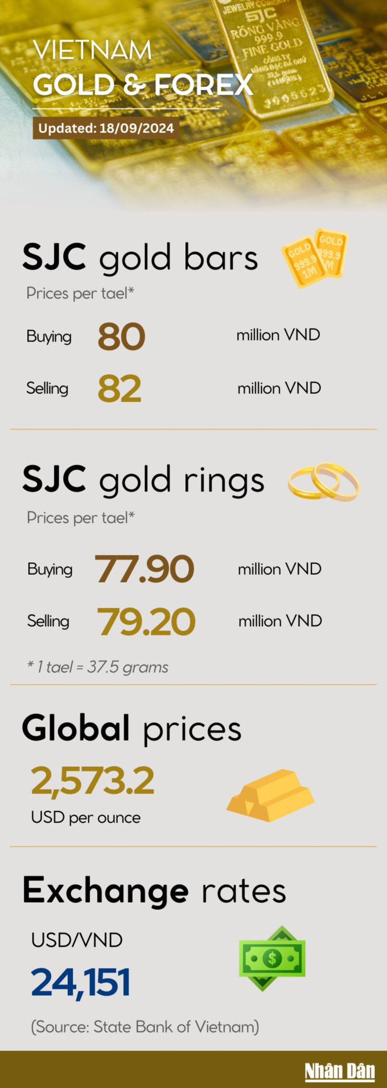 The selling price of SJC-branded gold bar s stayed unchaged at 82 million VND per tael, while gold ring price was stable at 79 . 2 million VND per tael on September 18.