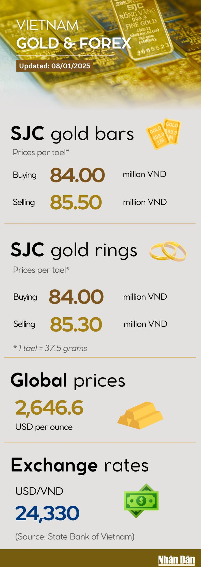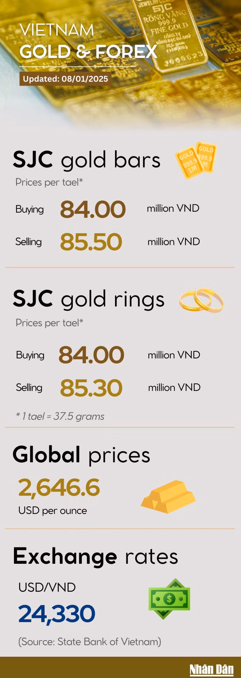 Infographic: Gold bar and ring prices rise on January 8