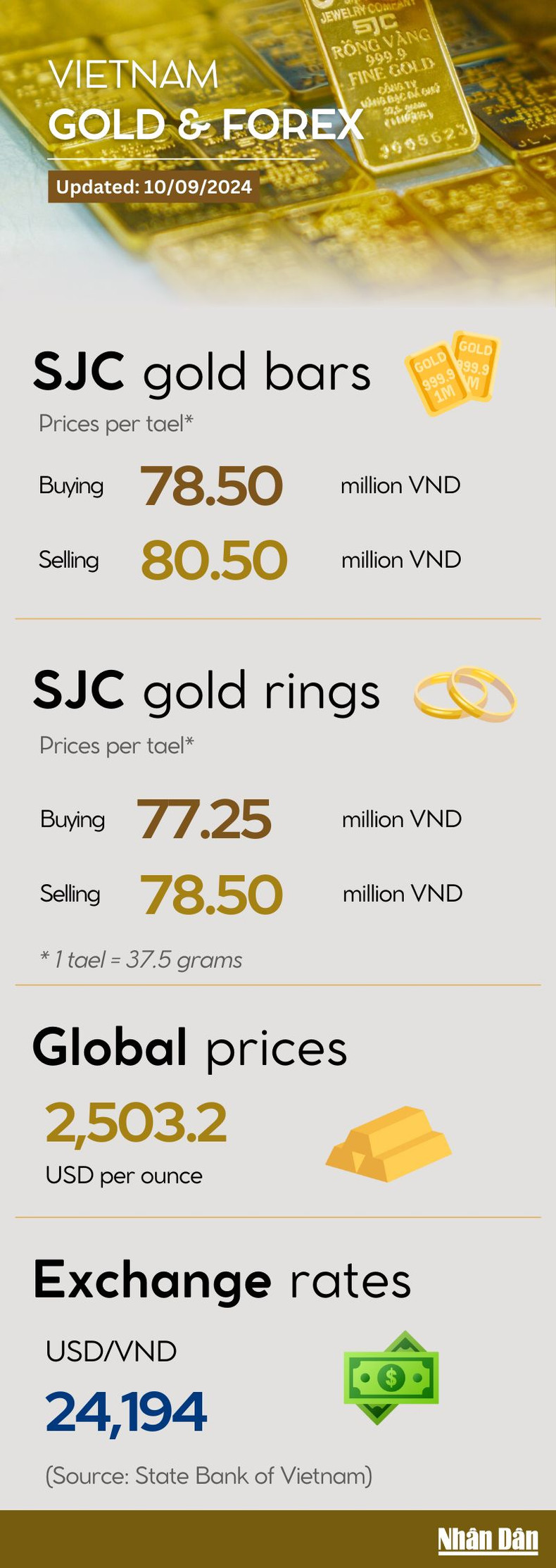 The selling price of SJC-branded gold rings rose slightly to 78.50 million VND per tael on September 10.