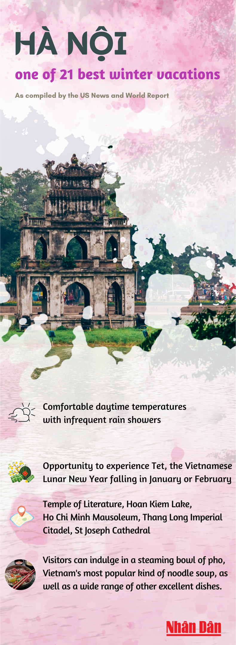 The Vietnamese capital Hanoi has been selected by the US News and World Report as one of the best 21 winter vacation destinations, citing its comfortable weather, excellent cuisine and rich traditional culture.
