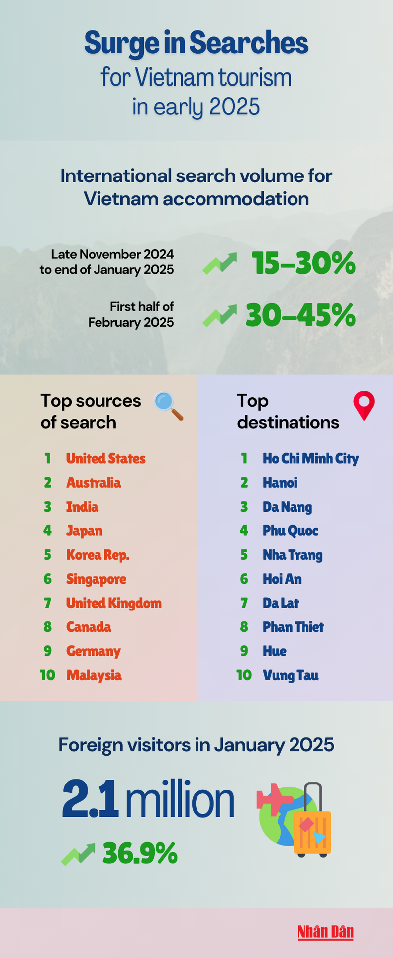 According to Google data, international searches for tourist accommodation in Vietnam from late November 2024 to the end of January 2025 increased by 15-30% compared to last year.