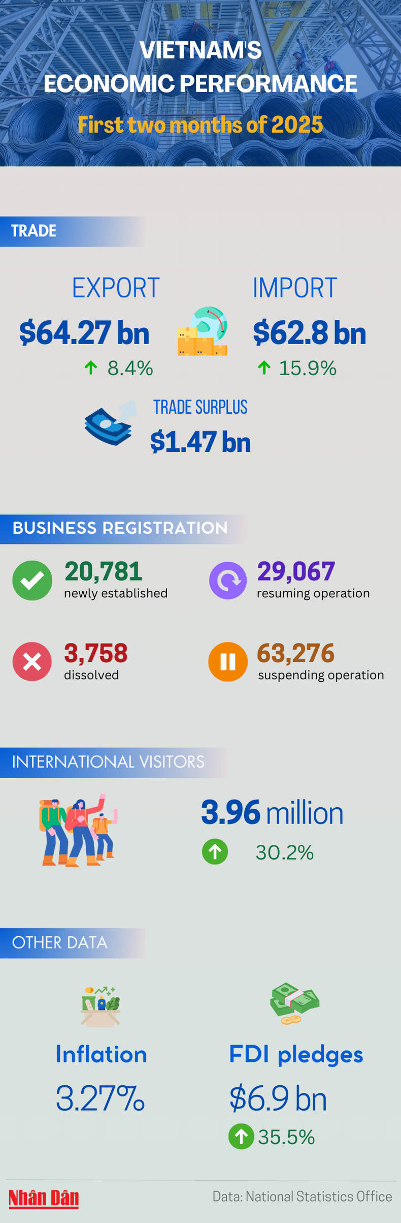 Infographic: Many positive signals in Vietnam's economy during the first two months of 2025