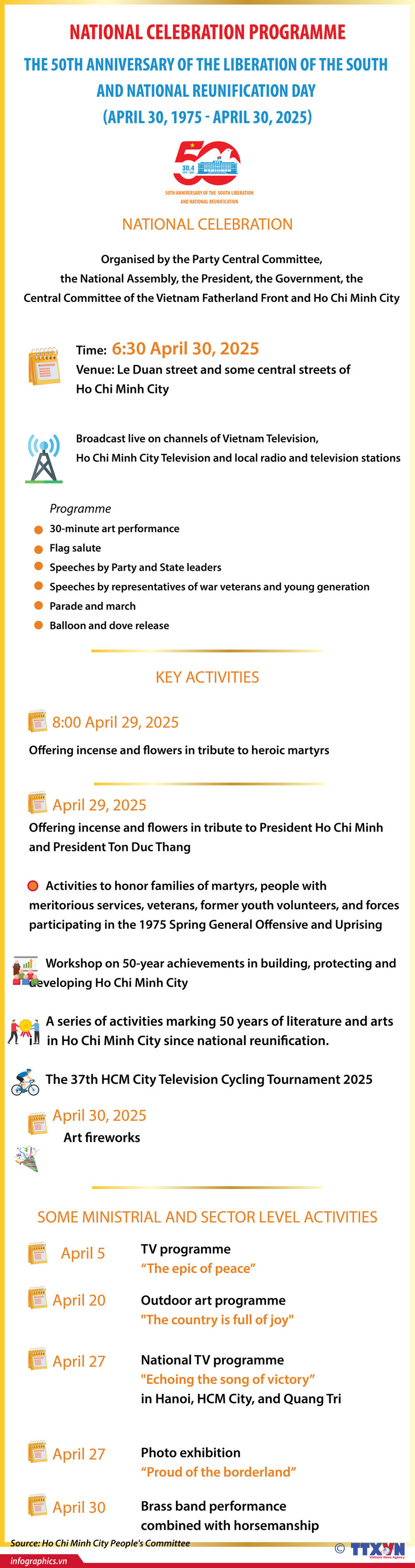 Infographic: National programme to mark 50th anniversary of south liberation, national reunification