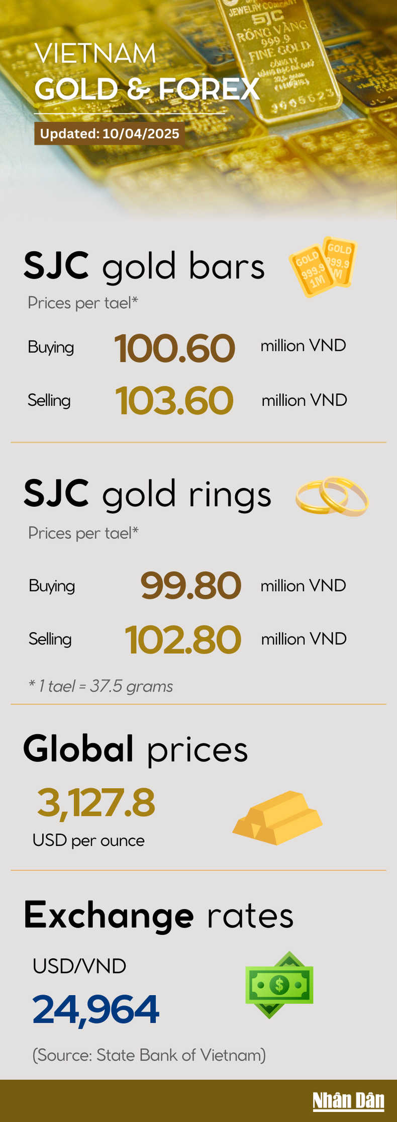 Infographic: SJC gold bars surge close to 104 million VND per tael on April 10