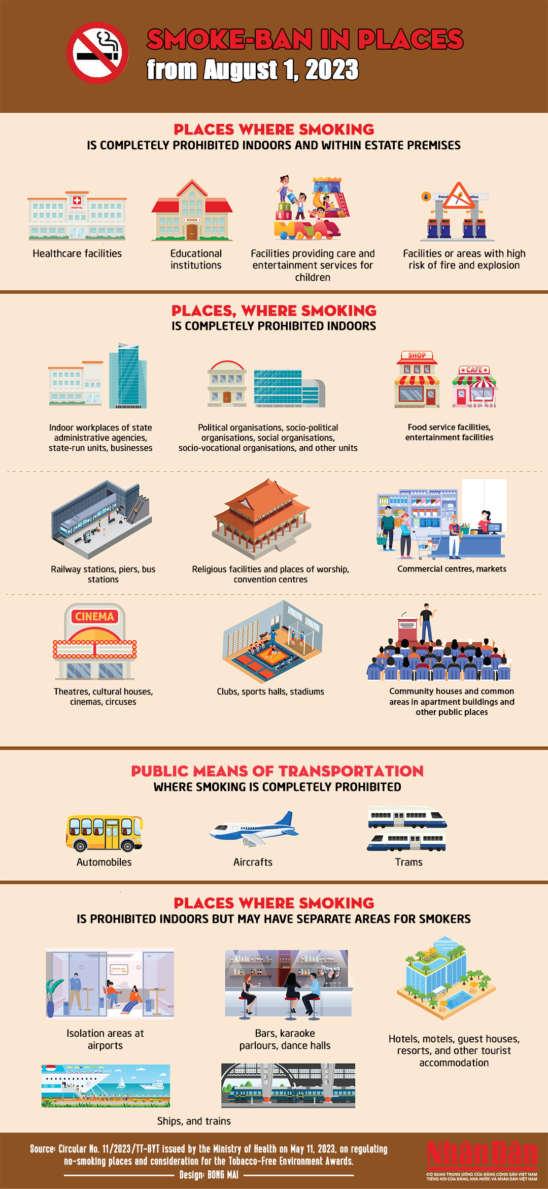 The Minister of Health recently issued Circular No. 11/2023/TT-BYT, regulating no-smoking places. The Circular will take effect from August 01, 2023.