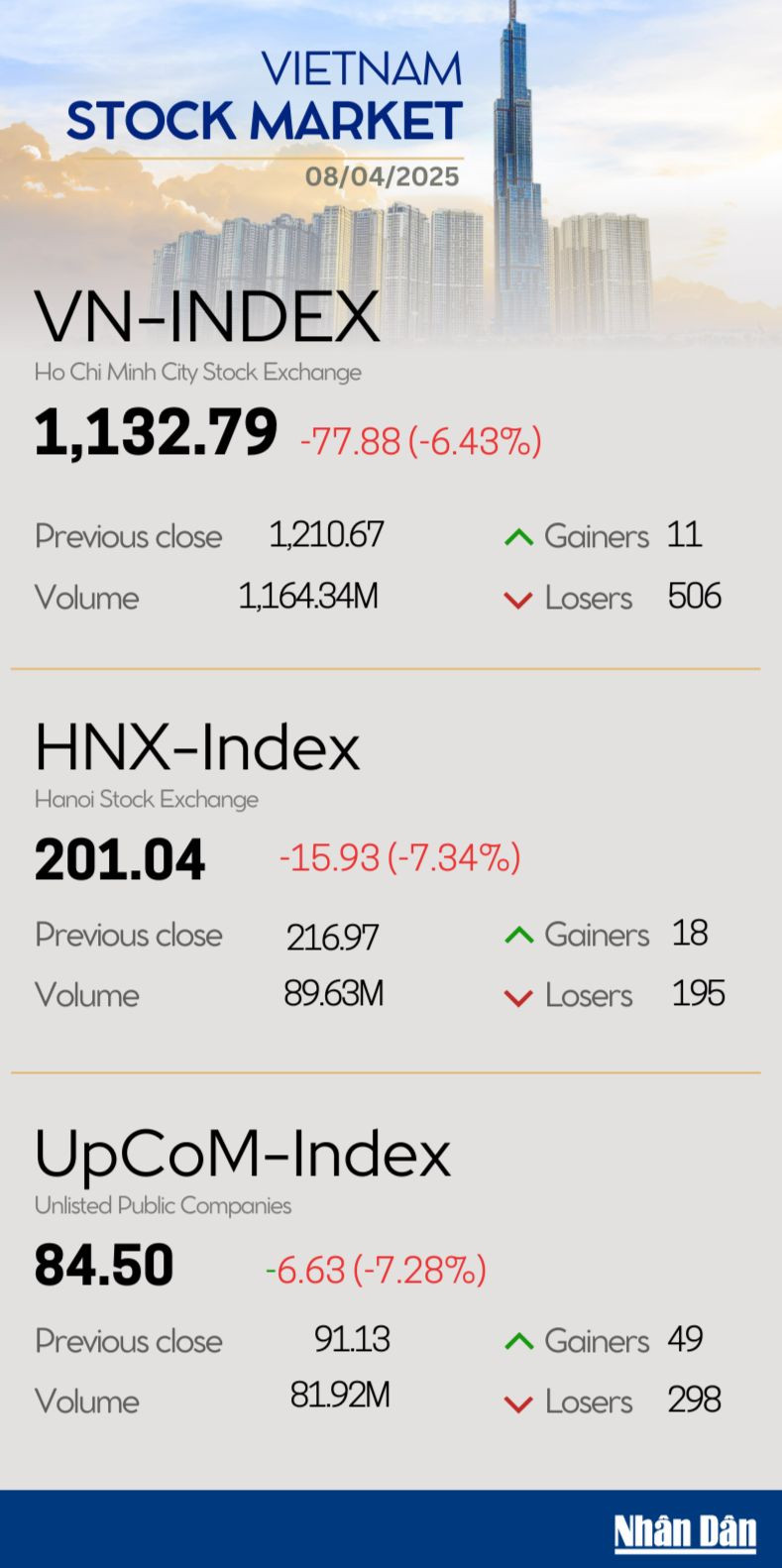 Vietnam's benchmark VN-Index was down 6.43%, from April 4 to 1,132.79 points on April 8.