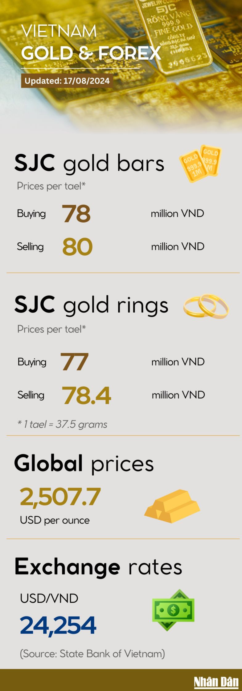 The gold price in the world market skyrocketed to over 2,500 USD per ounce due to geopolitical crisis information and disappointing housing data report from the US. In the domestic market, SJC gold bar selling price remained unchaged at 80 million VND per tael while SJC gold ring selling price increased sharply to 78.4 million VND per tael.