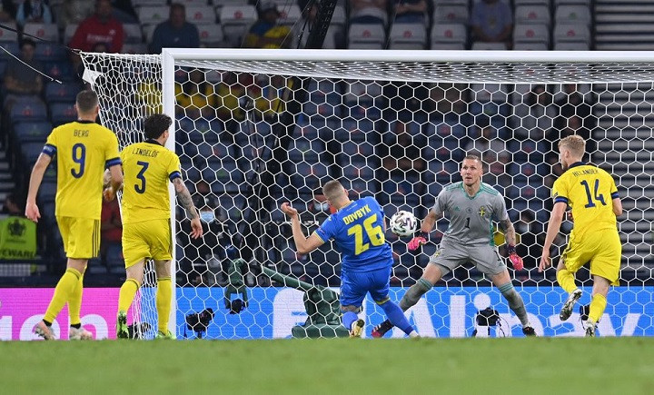 Soccer Football - Euro 2020 - Round of 16 - Sweden v Ukraine - Hampden Park, Glasgow, Scotland, Britain - June 29, 2021 Ukraine's Artem Dovbyk scores their second goal. (Photo: Reuters)