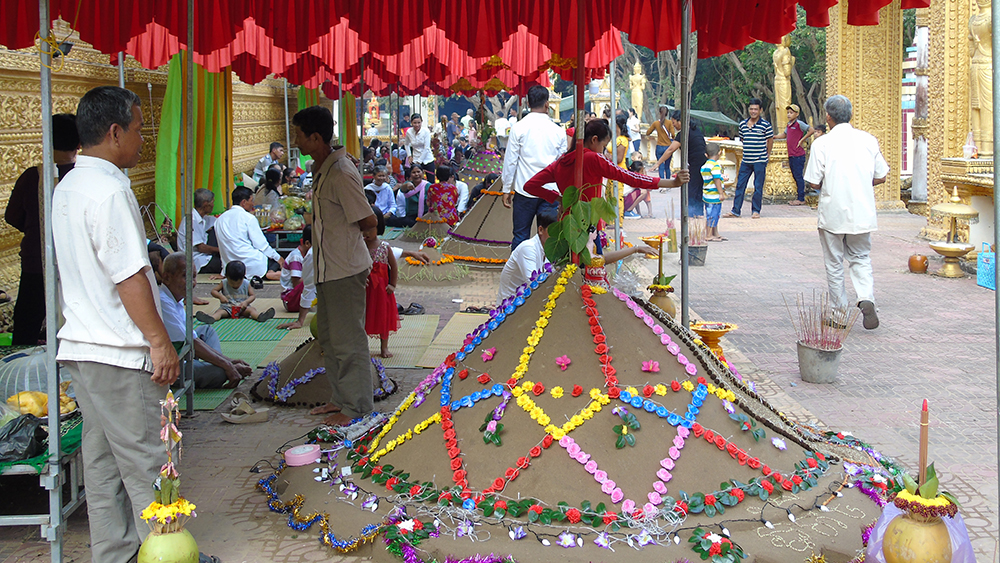 In the morning, Khmer people dress up and go to Buddhist temples, bringing offerings including incense, candles and flowers.