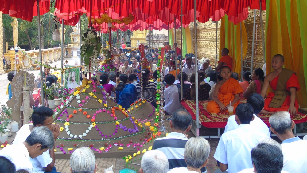 On the second day, called Wonbof, the families offer food to the monks and build a hillock of sand in front of the temples to pray for good weather and bumper harvest.