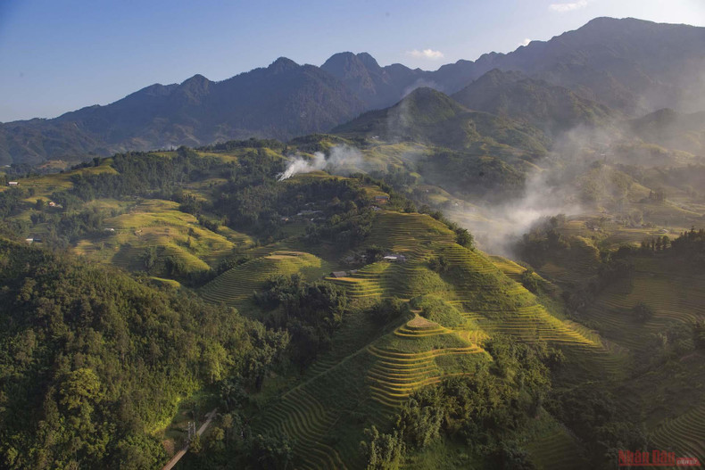 Along the mountain road between the hamlets of Ly Linh Ho and Lao Chai, which are close to the terraced fields, visitors can enjoy the harvesting atmosphere of the locals and smell the fragrance of rice mixed with the scent of burning straw.
