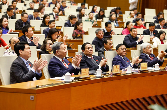 Vietnamese top leaders at the 15th National Assembly's 9th extraordinary session on February 19 (Photo: VNA)