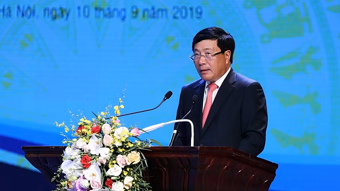 Deputy PM and FM Pham Binh Minh speaks at the ceremony. (Photo: VGP)