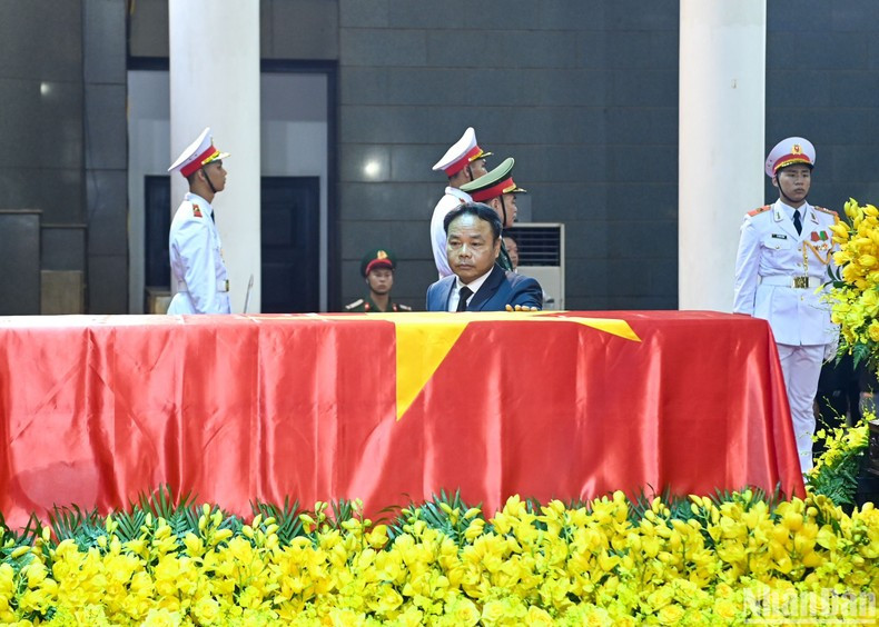 | The Nhan Dan delegation walks around the coffin of General Secretary Nguyen Phu Trong. |
