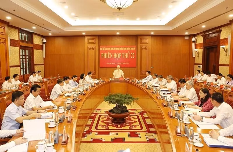 The 22nd session of the Central Steering Committee for Corruption and Negative Phenomena Prevention and Control was convened to review and assess the results achieved during the first six months of the year and identify tasks for the last six months of 2022. (Photo: VNA)